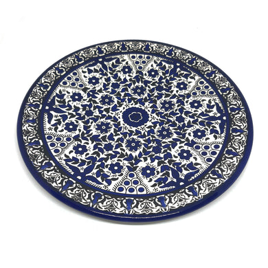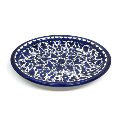 Hand-Painted Blue and White Round Ceramic Plate Made In The Holy Land